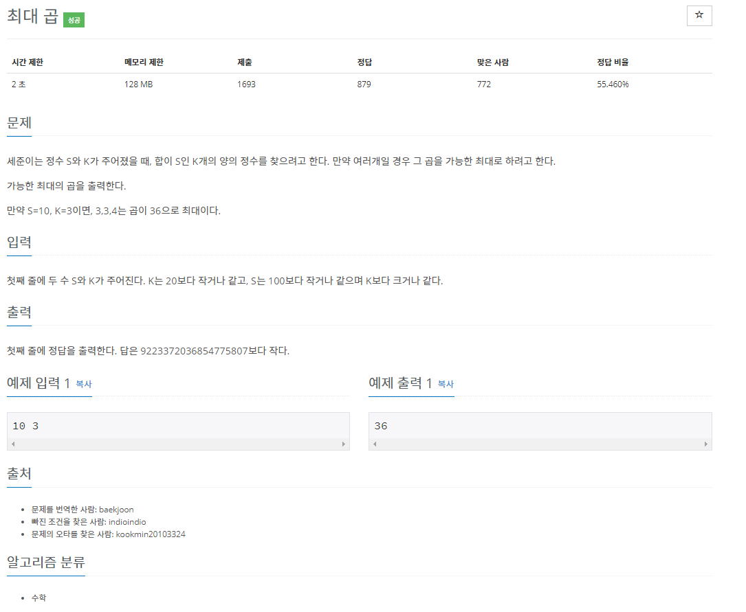 이 문제는 가능한 최대의 곱을 출력해야한다는 문제