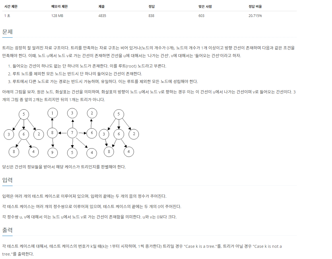 //루트하나있고, 1-1같은 간선입력을 안받았다면 트리